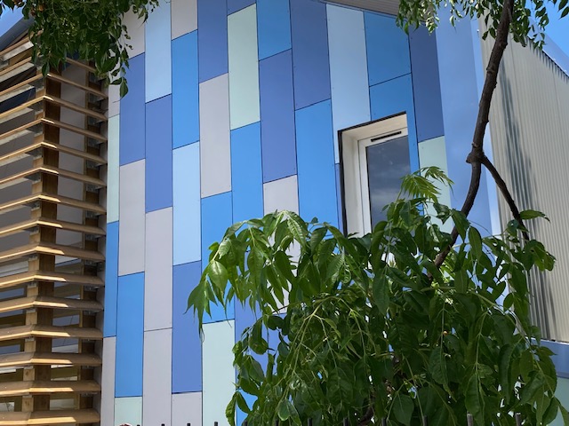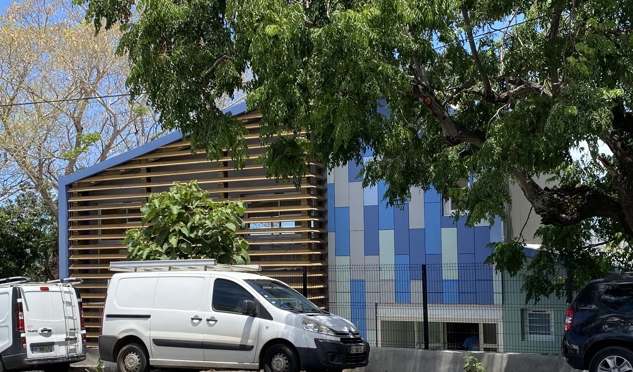 Le projet est implanté sur l’emplacement de l’ancien Rased, démoli par la commune sur le haut de la parcelle HV55. Le futur Rased sera hors enceinte de l’école Célimène mais néanmoins sur la même parcelle. Il ne sera séparé de l’école que d’une dizaine de mètres, hors des circulations VL de la route principale. Pas de construction mitoyenne envisagée, le bâtiment sera édifié à 3m de la limite séparative Nord Ouest. Le bâtiment propose deux salles polyvalentes d’environ 70m² en haut et en bas. Les deux fonctions se trouvant en RDC (niveau accessible) et en étage (R+1) il n’y a pas besoin de réaliser un ascenseur. Les locaux précédemment cités sont complétés par une zone sanitaires, en RDC avec une zone rangement et entretien. Le bâtiment est édifié à l’entrée de ville, et l’architecture se veut contemporaine. Le volume sera coiffée d’une toiture tôle à deux pentes et d’un appentis pour casser la hauteur du volume déjà situé en contrebas de la route du fait de sa topographie. Les volumes seront habillés de brises soleil et de bardage.